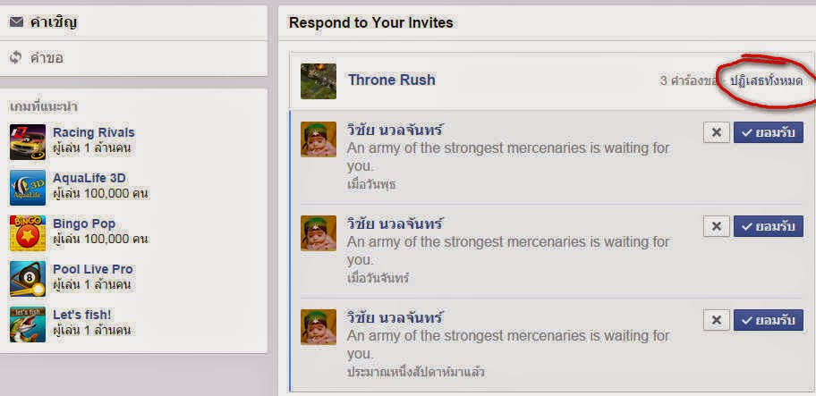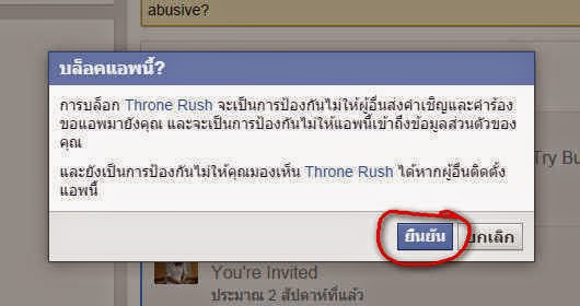บางท่านอาจจะมีหลายเกมส์ที่ส่งคำเชิญมา ก็ไล่ลบไปทีละเกมส์นะครับ แล้วคำเชิญจากเกมส์ใดๆ ที่ท่านได้บล็อคไปแล้วหรือเพื่อนของท่านเล่นก็จะไม่ส่งคำเชิญมากวนใจอีกต่อไป ดีกว่าเสียเพื่อนโดยไม่เจตนา^^