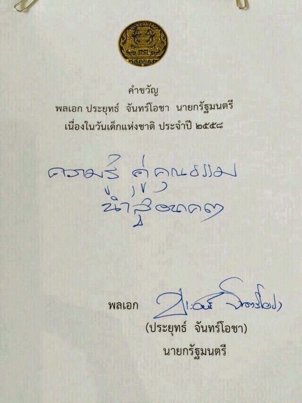 พล.อ. ประยุทธ์ จันทร์โอชา ให้ คำขวัญวันเด็ก 2558 คือ